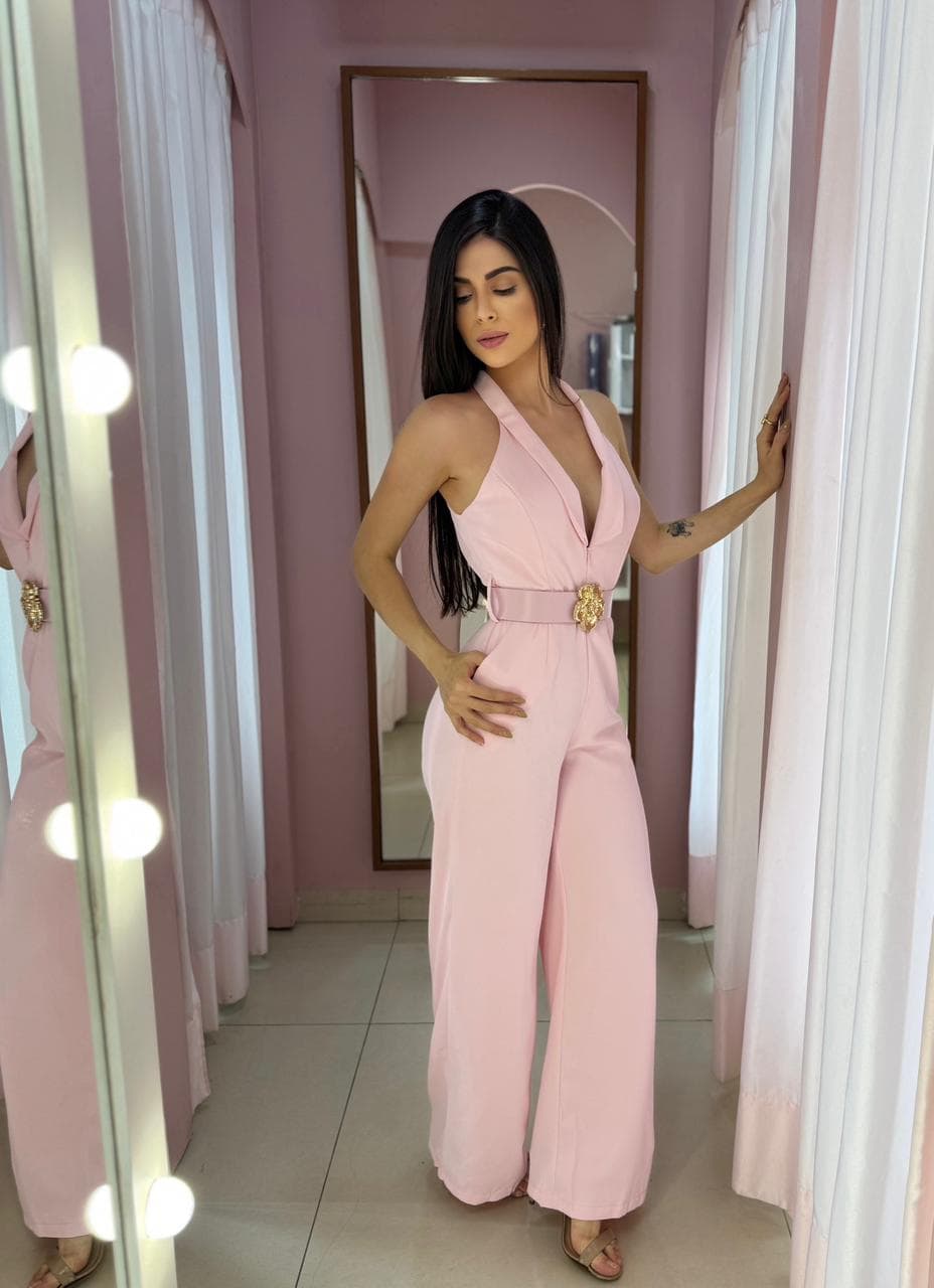 Macacão sofisticado com decote profundo que valoriza o colo com charme, aliado ao caimento reto que alonga a silhueta. Possui modelagem moderna com gola estruturada e cinto trabalhado que destaca a cintura com elegância. O tecido leve garante conforto e movimento, enquanto o acabamento impecável entrega um visual refinado e feminino, ideal para ocasiões especiais.